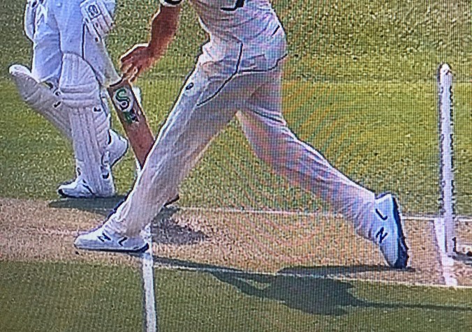 English third umpire Michael Gough was having none of that first replay, instead calling for several more views. In Cummins’ favour was the playing condition that gives the bowler the benefit of the doubt if the third umpire can’t make a definitive call. Several more replays, some zoomed in, some from behind the foot, had everyone confused. Exactly what was Gough looking for? Squint your eyes really really tightly, tilt your head to the right, step through the shoe landing frame by frame and maybe, just maybe it was still clearly a no ball!